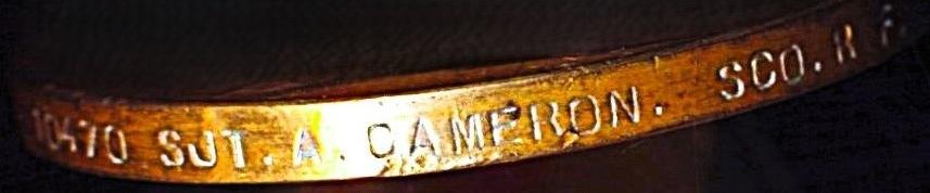 The recipient was Sergeant-Piper Alexander Cameron, who had held the appointment popularly known as 'Pipe-Major' while serving with 2nd Battalion Scottish Rifles (Cameronians)