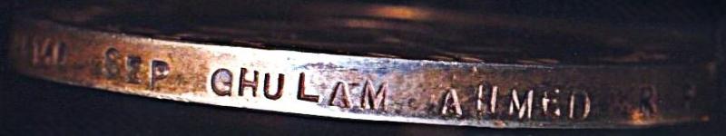 At the time the recipient, Ghulam Ahmed, earned his 'Pakistan Medal' he was holding the rank of Sepoy (Private) while serving with the Royal Pakistan Army Service Corps, of the Pakistan Army. The inclusion of the MT suffix in the naming indicates that the recipient was serving with the Motor Transport branch of the Royal Pakistan Army Service Corps