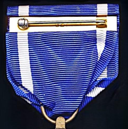 The medal riband fitted with the original mounting brooch bar. This latter with its long hinged pin and intricate drop lock fittings as issued Condition: EF