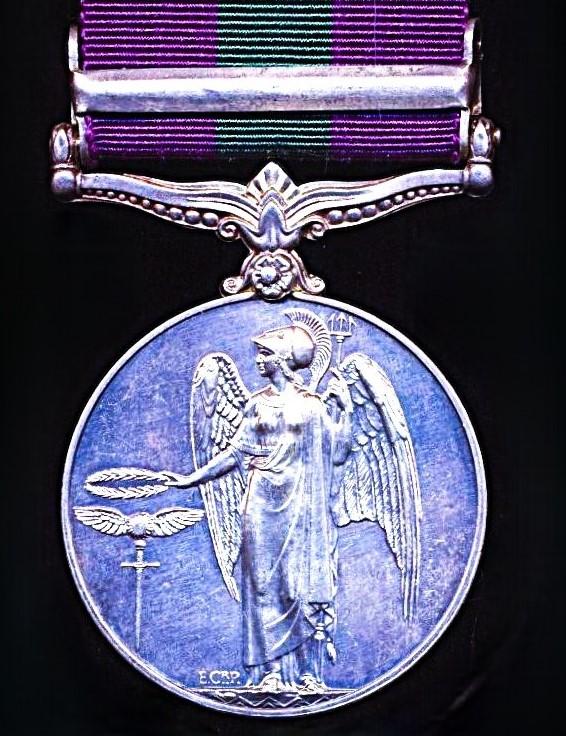 General Service Medal 1918. GVI 2nd issue with clasp 'Malaya' (4841 SC Hussein B Rasol F of M Pol)