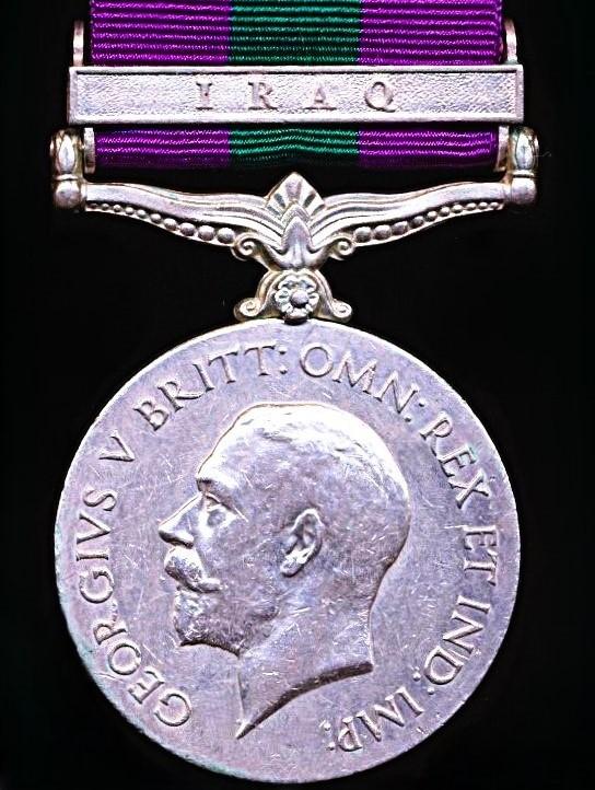 General Service Medal 1918-62. GV first issue with clasp 'Iraq' (Cook Shankar 12-Pioneers.)