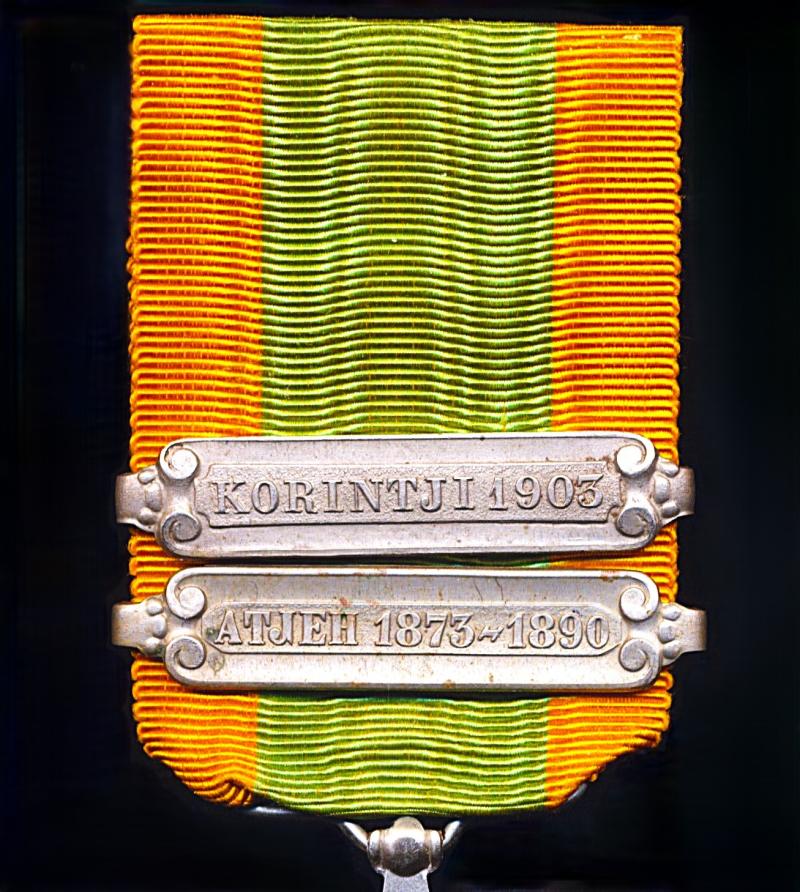 Netherlands Expeditions Cross (Expeditie-Kruis). 2nd Type Portrait Obverse. With 2 x clasps (or 'Gespen'). 'Atjeh 1873-1896' & 'Korintji 1903'
