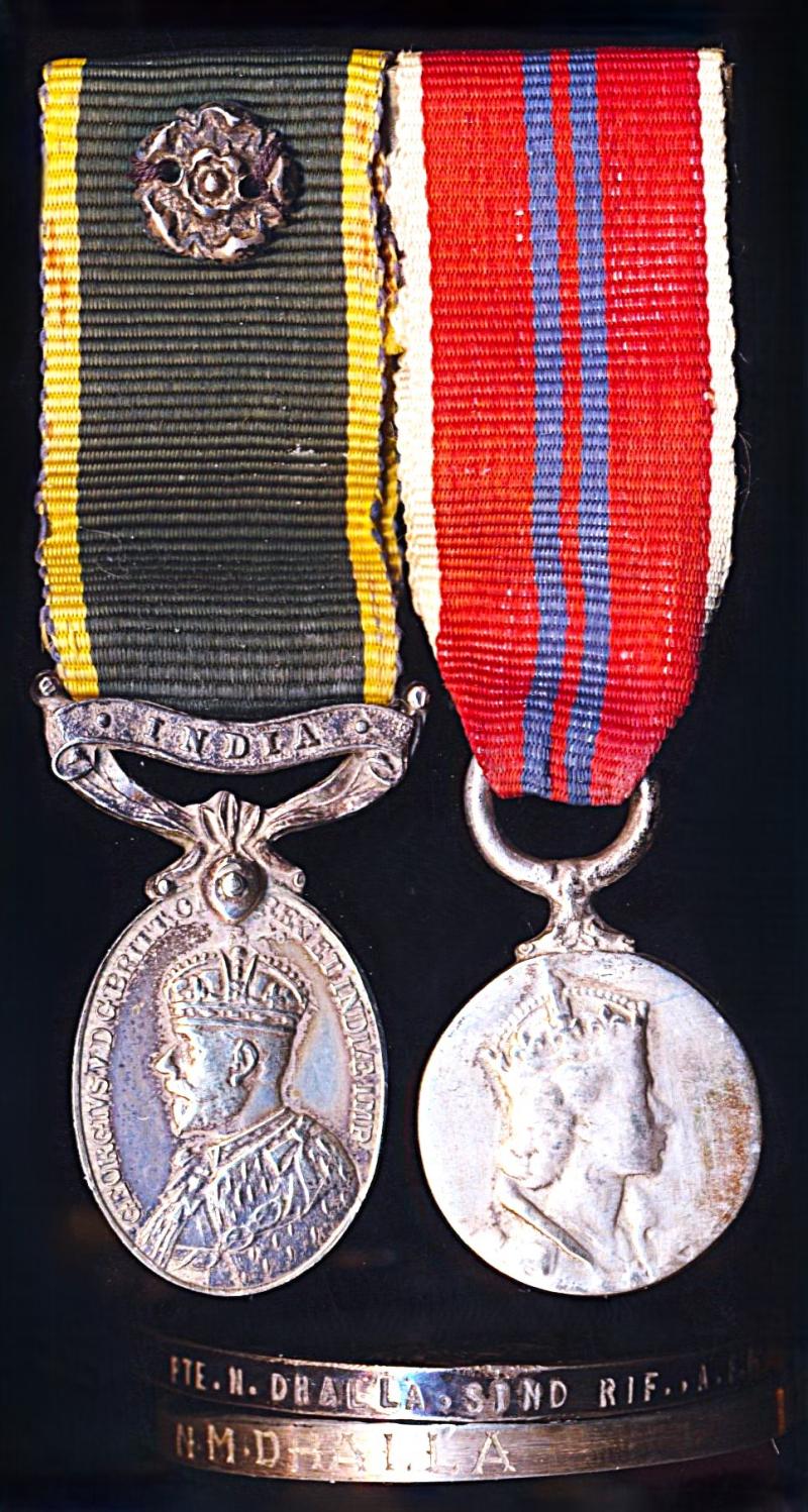 A positively attributed pair of miniature medals for Coronation 1953 'Dominion of Pakistan' & Volunteer Long Service in India: Pte N. Dhalla, Sind Rifles (Auxiliary Force India)