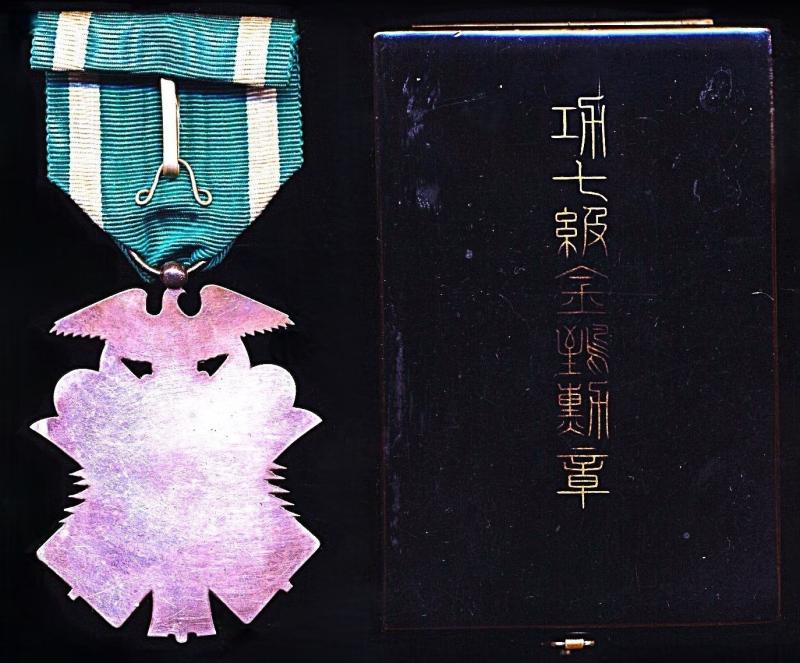 The decoration is sold with its 'Rio-Nuri' lacquered hinged case of issue with the name of the decoration in gilt Japanese characters on upper lid