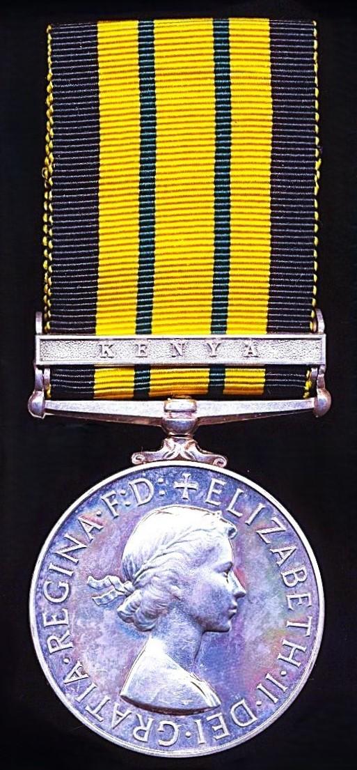 Africa General Service Medal Medal 1902-56. EIIR issue, with clasp 'Kenya' (M.367 I.P.I (R) J M. Wood.)