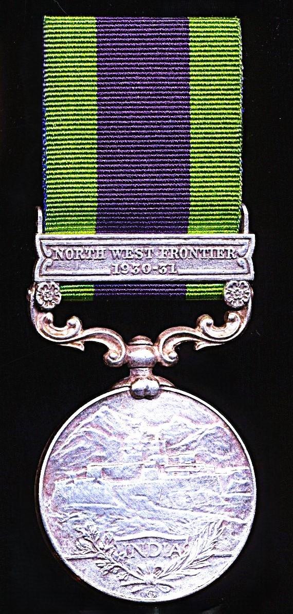 India General Service Medal 1908-35. GV 2nd Issue with clasp 'North West Frontier 1930-31' (6607 Swr. Asat Ali Khan. Poona Horse.)