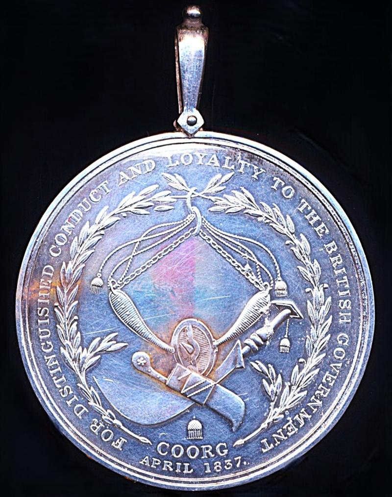 The Coorg Medal was issued in either Gold, or Silver, and was only awarded to Indian native recipients