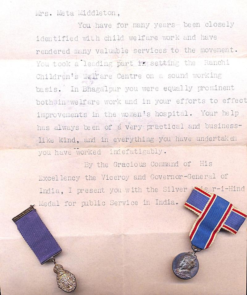 - Coronation Medal 1937: Mrs Middleton, official award cert fm Viceregal Lodge, Simla, 12/05/37
