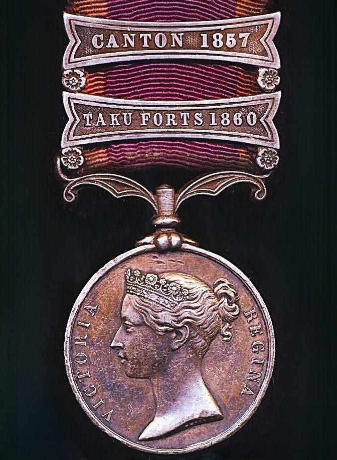 China Medal 1857-60. With 2 x clasps 'Taku Forts 1860' & 'Canton 1857'