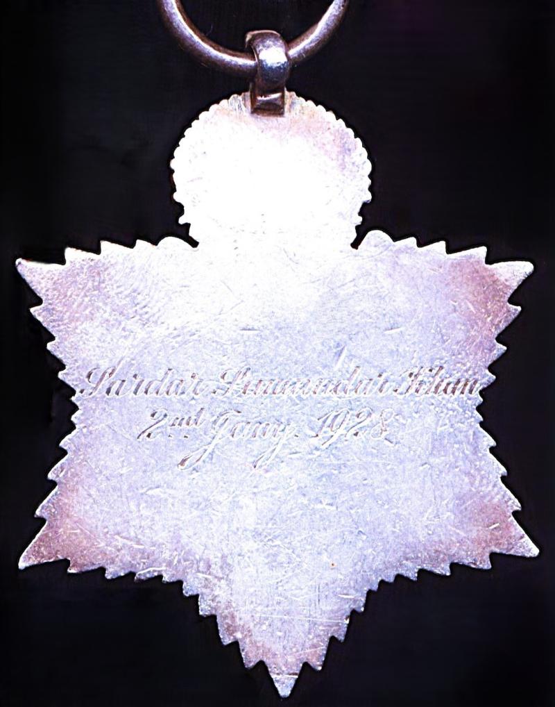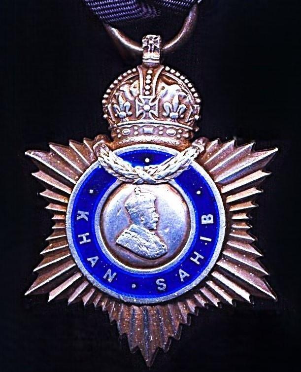 Per above referenced source, the recipient, already held the honorific local title of 'Sardar' (used in the context of Chief of a local tribe), and became Khan Sahib Sardar Khan, chief of the Borazi Tribe of Sibi, Baluchistan (now Balochistan, Pakistan).