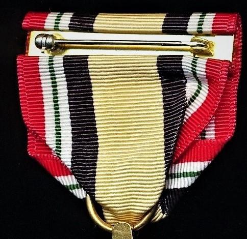 Medal riband fitted with original mounting brooch with intricate hinged pin & drop latch clasp fitting. The reverse of mounting brooch with official Federal Government Contractors mark 'G27'