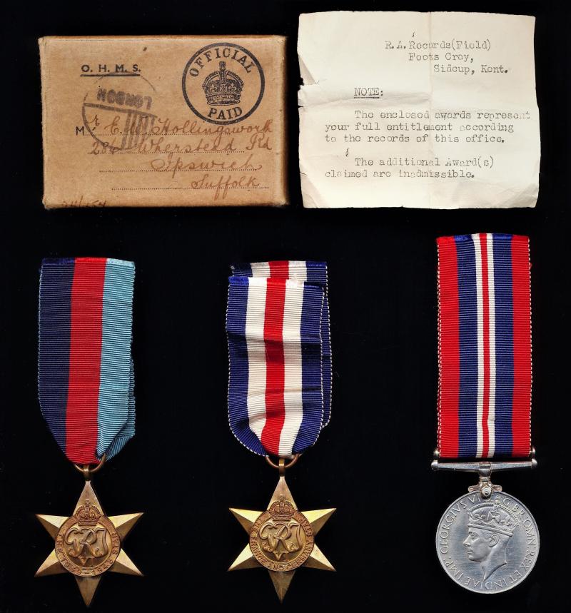 A 'Gunner's' North West Europe campaign medal group of 3: 932598 Gunner Eric William Hollingworth, Royal Artillery