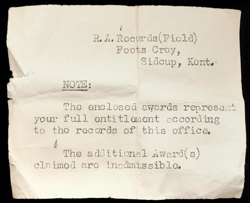 The medals all Royal Mint issues complete with their original silk ribands as issued and contained in their official named card box of issue from Royal Artillery (Field) Records, this addressed to: