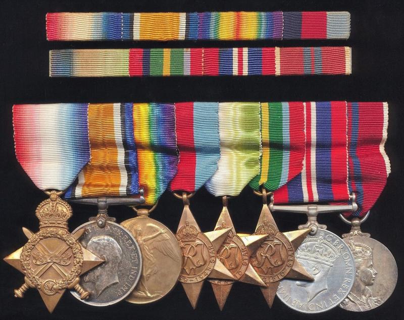 - 2 x rows of medal ribands (full set) mounted on pin-back bars, and as-worn by the recipient