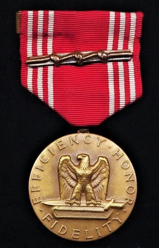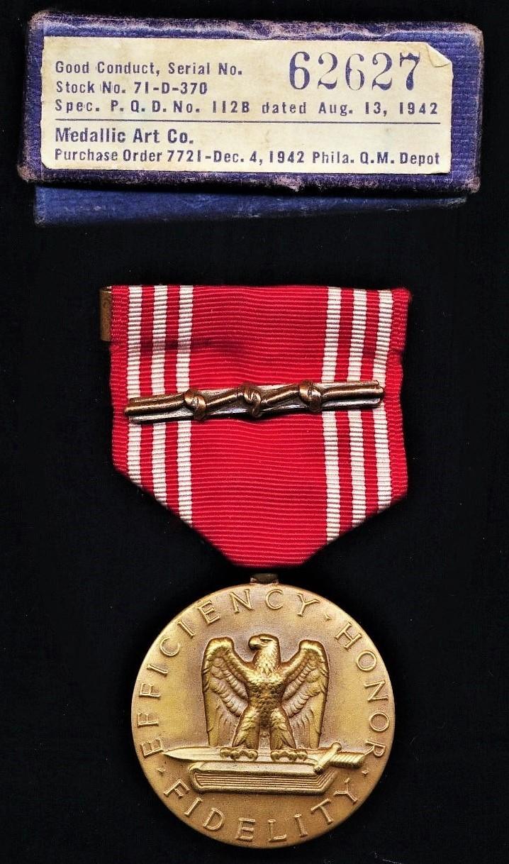 United States of America: Army Good Conduct Medal. First type. With 'Bronze' further service bar with '3 x Knots'. Officially numbered 62627