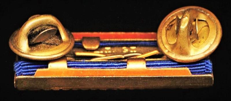 A blue silk 'moire' riband contained within gilt frame. The citation complete with gilt frame border and -as-worn