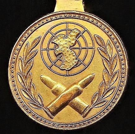In 1954, the medal was re-styled in name and design, the revised style having 'Crossed Bullets' obverse, and retaining the same riband as the previous medal