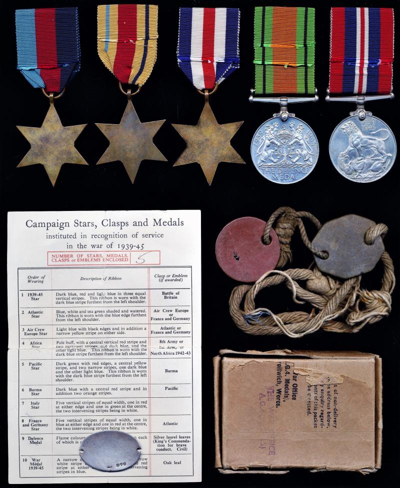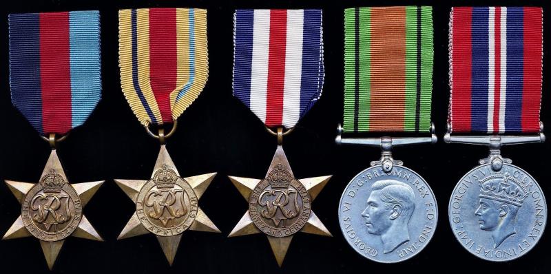 A positively attributed 'Tanks' Officer's Second World War campaign medal group of 5: 2nd Lieutenant James Greaves, Royal Armoured Corps, late Tank Corps