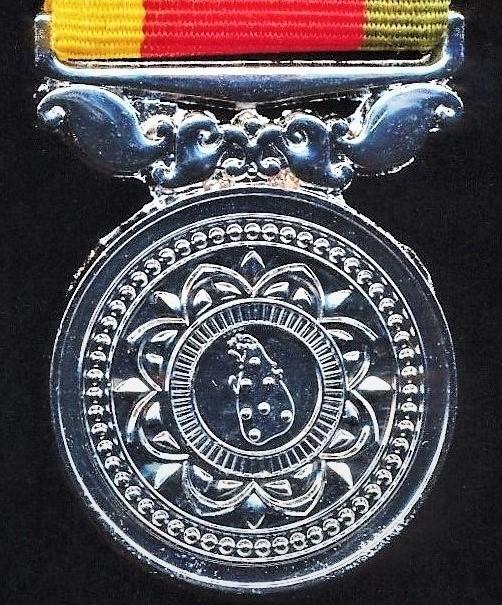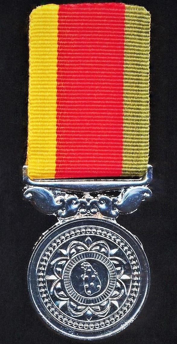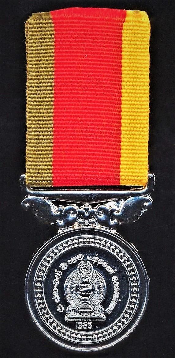 The Civil War Service Medal or 'Purna Bhumi Padakkama' (Sinhala) was awarded to eligible regular and volunteer military and civil uniformed services of Sri Lanka for active service in designated campaign theatres during the Sri Lankan Civil War between the dates of 22 July 1977 to 1 January 2010