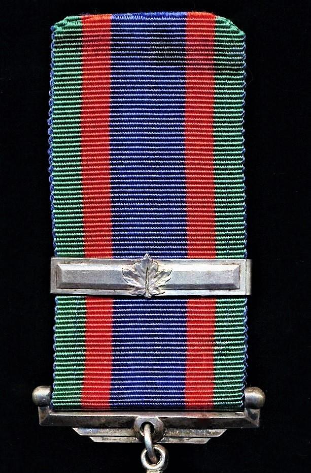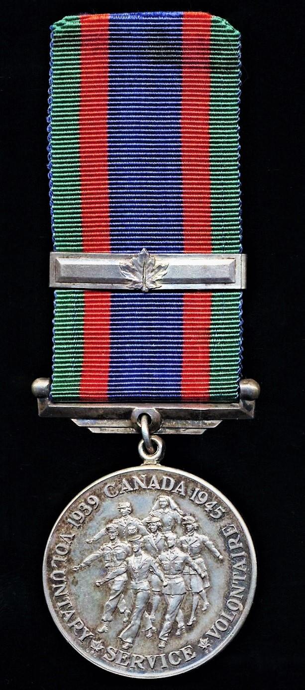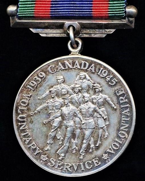 The Canadian Volunteer Service Medal was awarded in addition to the standard 'Imperial' (British) campaign awards for the Second World War, and is worn immediately after the Defence Medal and before the War Medal