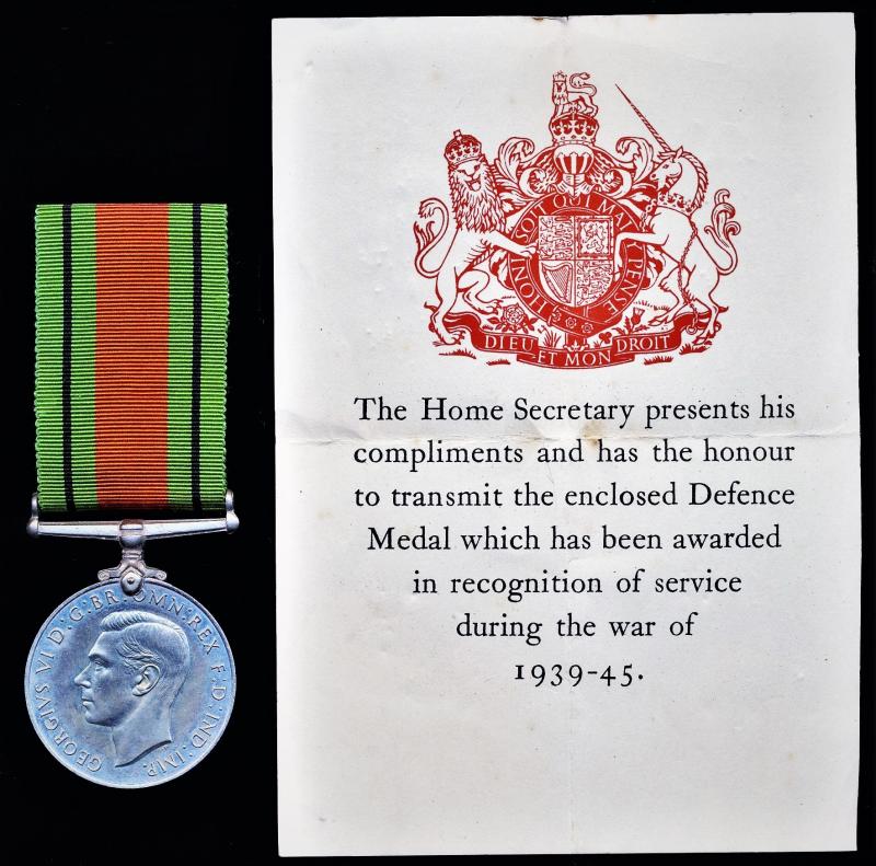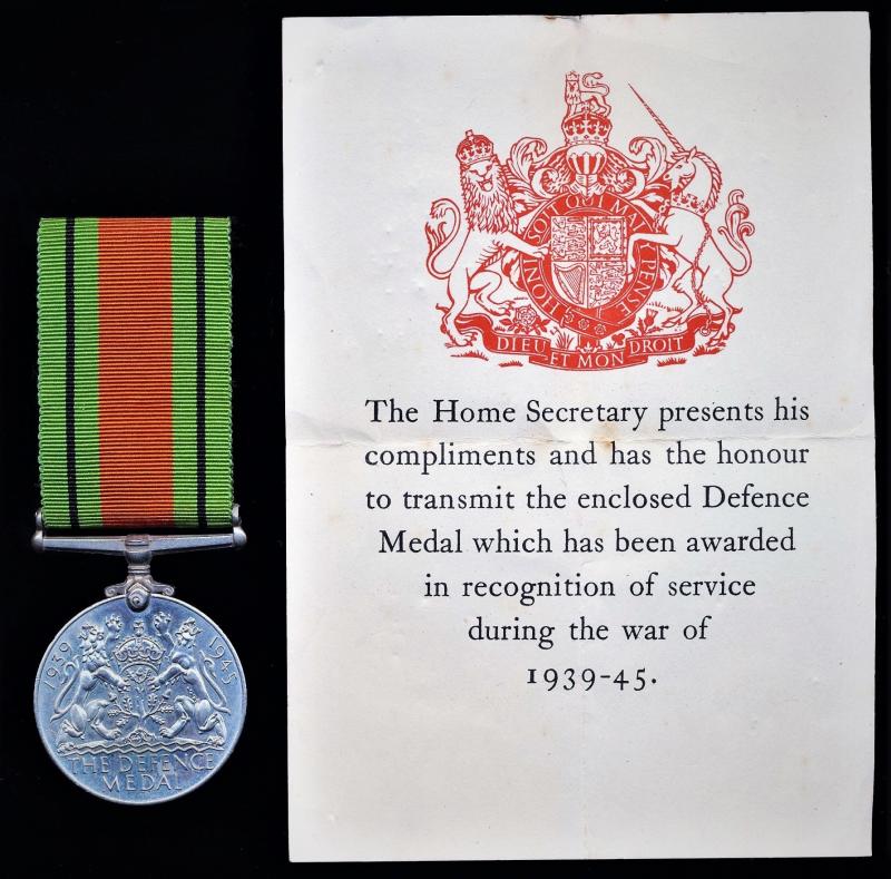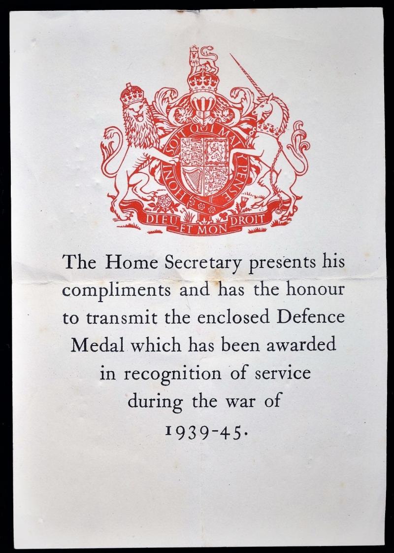 Sold together with an original 'Home Secretary's' transmittal letter for the Defence Medal
