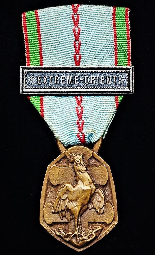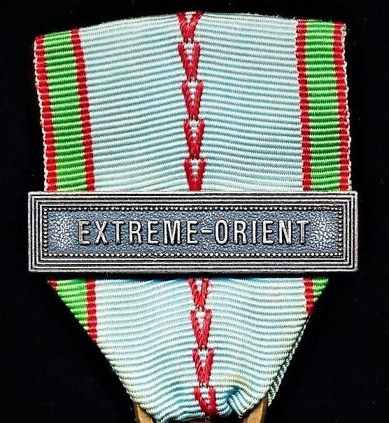 The majority of qualifying personnel for this uncommon seen clasp fought in the Franco-Siam (Thailand) border war of 1940 fought by Vichy colonial forces (including 5e REI, or the 5th Regiment of Foreign Infantry ' Regiment of Tonkin' - a regiment of the French Foreign Legion) and the bloody Franco-Japan campaign of 1945, when the occupying Imperial Japanese Forces unleashed a 'Coup d'Etat', or campaign to destroy and remove the French colonial forces and facilitate indigenous nationalist forces supplant French colonial rule in Vietnam and the two neighbouring countries of Laos and Cambodia.....the seeds of the first Vietnam War had been sown!