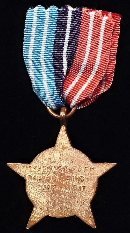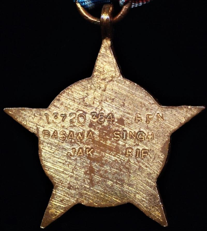 India: 1965 India-Pakistan War Star (Samar Seva Star 1965). Officially impressed naming (13720354 Rfn Basawa Singh Jak Rif)