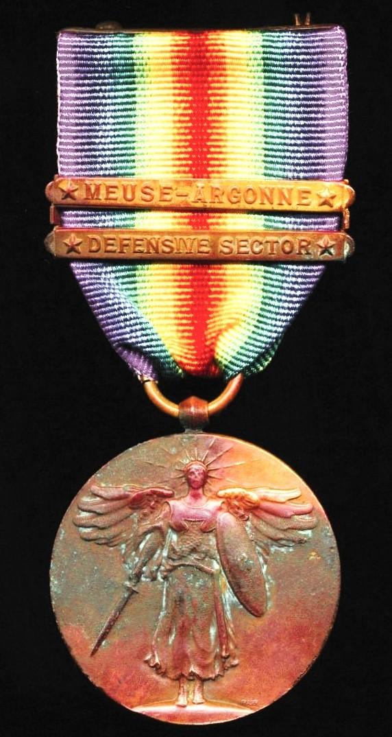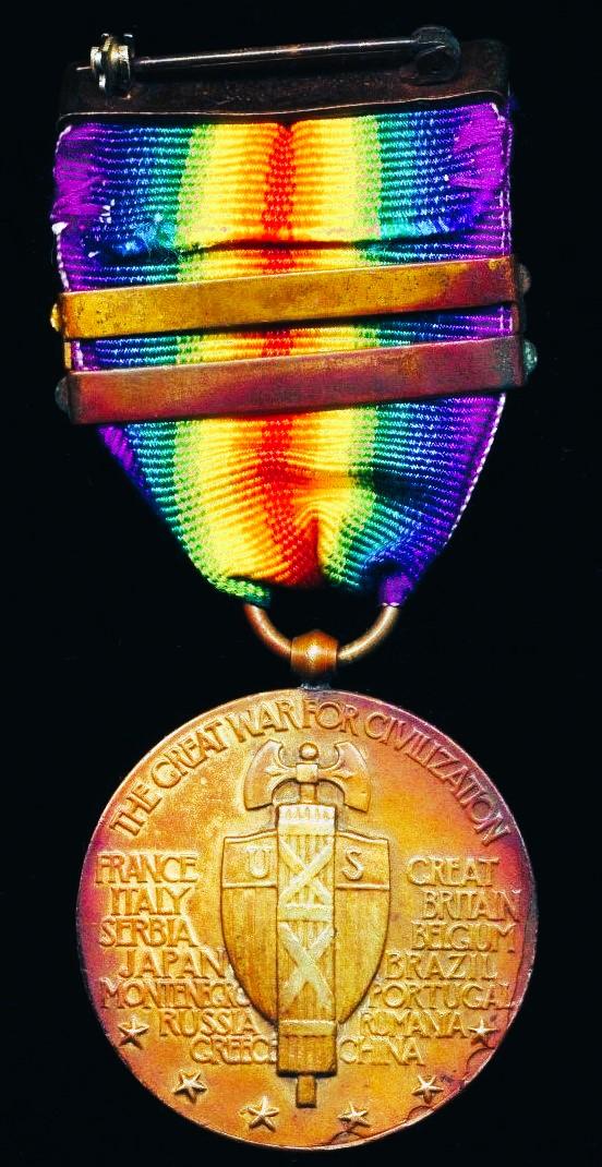 United States: Interallied Victory Medal 1918. With 2 x Army clasps 'Defensive Sector' & 'Meuse-Argonne'