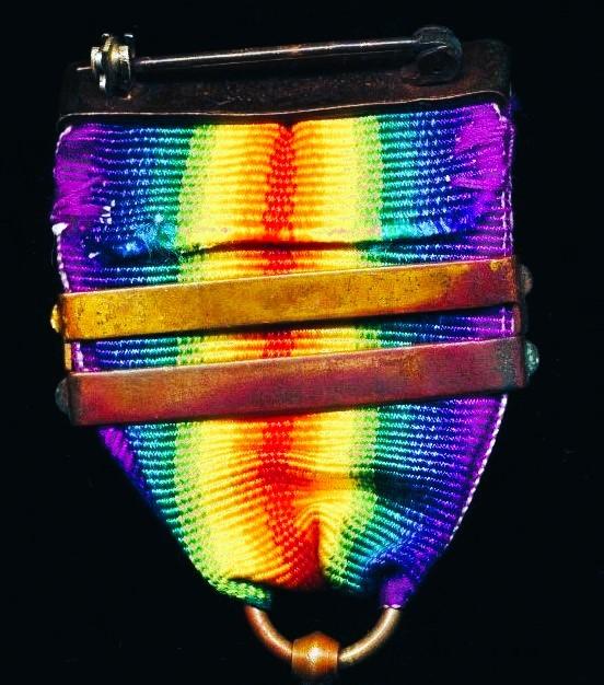 The medal, with its original wrap brooch and clasp fittings, has been fitted with a later replacement riband