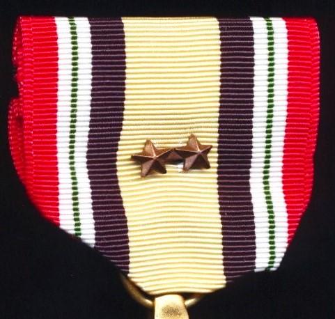 The Bronze Service Stars denote that the recipient served in two additional qualifying campaign phases = total of 3 x campaign awards