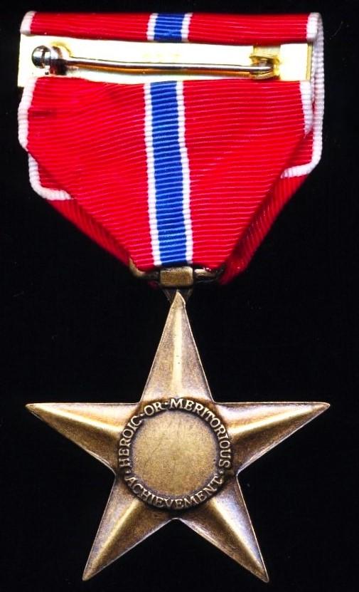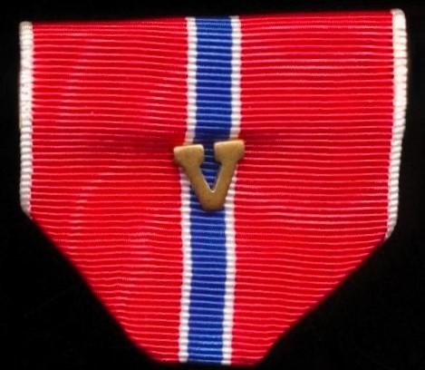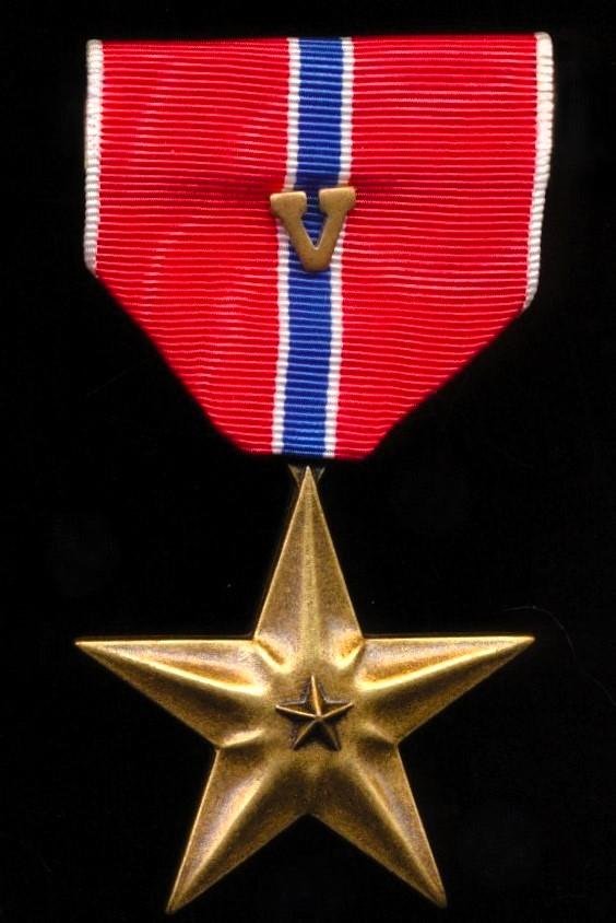 The BSM with bronze 'V' valor emblem, denoting that the recipient had been awarded the Bronze Star Medals for 'Valor' (Combat Heroism)