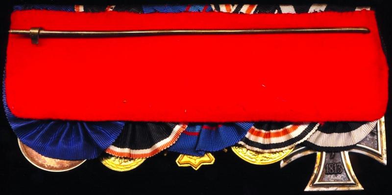 The 5 x medals all mounted on silk ribands and as-worn in a typical contemporary German 'Parade Mount', or 'Continental' style. The reverse of the mounting pad retaining its original long hinged-pin & clasp fittings