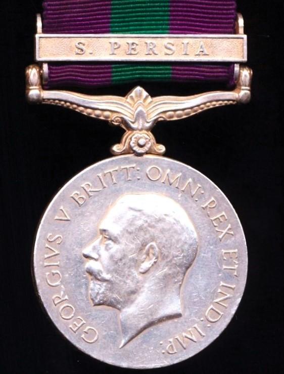 General Service 1918-62. GV first issue with clasp 'S. Persia'(3081 L.Dfdr Ram Singh 15 Lancers)