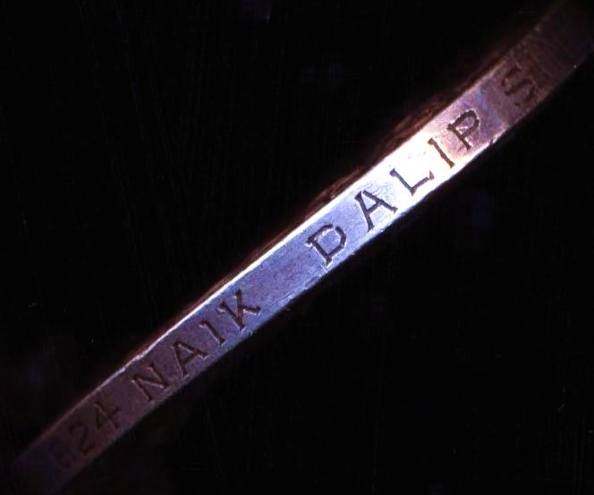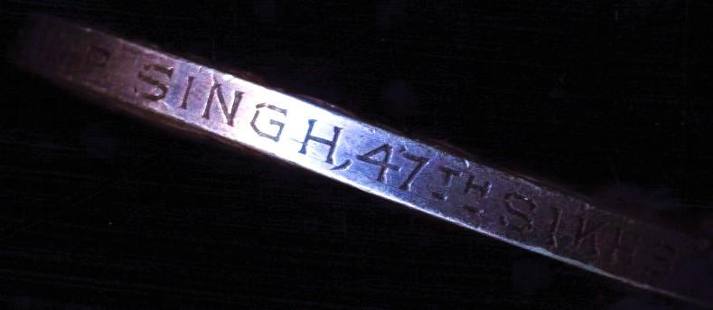 The recipients regimental number with single digit transcription error, it should be 1814 (sic), the medal officially engraved, and with nil corrections, exactly as issued from the Calcutta Mint. There was only one person called Dalip Singh of the 47th Sikhs who was ever decorated with the IDSM vis No. 1814 Naik Dalip Singh