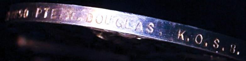 William John Douglas, third son of Andrew Douglas (a Quarryman & Stone Carter) and Janet (Douglas) was a native of Dumfries, Scotland, where he was born in 1897. William had several siblings, including older brother David (b. 1895), and younger brothers James Hughes Douglas (b. 1899) and Robert Douglas (b. 1910), and an elder sister, Agnes Douglas (b circa 1893). Amongst his siblings, his younger brother Robert Douglas, also became a professional soldier, joining 2nd Battalion Royal Scots, who was Wounded-in-Action during the Battle for Hong Kong on 21, December 1941, and later as a Far East Prisoner of War died of disease in enemy occupied Hong Kong, on 1942. William John Douglas enlisted in the British Army during the Great War, and he served in Egypt and Palestine with 1/5th (Dumfries & Galloway) Battalion King's Own Scottish Borderers, where his unit served with the Egyptian Expeditionary Force in Palestine. He was posted for a time to the 1st Garrison Battalion Royal Scots (which unit was deployed to Egypt / Cyprus). 1/5 K.O.S.B. was transferred to the Western Front in France and Flanders from April 1918. William survived the Great War and post-war decided to make a career in the British Army. In 1920, William was allocated a new unique Army Number, viz, 3178890, which number is in the unique block 3178001- 3233000 allocated to the K.O.S.B. in 1920. A long serving professional soldier, William served with 1st Battalion King's Own Scottish Borderers in Palestine (Mandate Territory) in 1936 during the 'Arab Rebellion'. In retirement, William John Douglas returned to his native Dumfries-shire in Scotland, where he is recorded to have died at Moffat, sometime in 1978