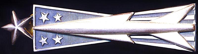 A two piece badge. Comprising a 'Rocket' missile surmounted by a five five point star; clutch fasteners; regulation size for wear on uniform tunic or service coat