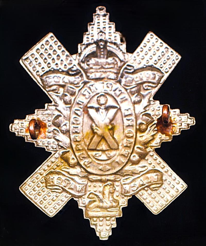 This pattern of cap badge with the regimental scrolls was worn by other-ranks of the Black Watch in South Africa 1902, the Great War and through Palestine 1936
