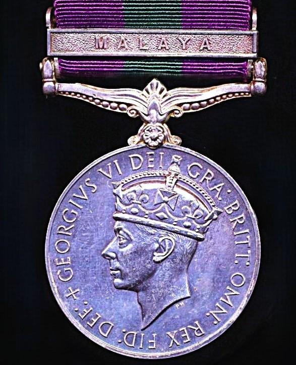 General Service Medal 1918. GVI 2nd issue with clasp 'Malaya' (4841 SC Hussein B Rasol F of M Pol)