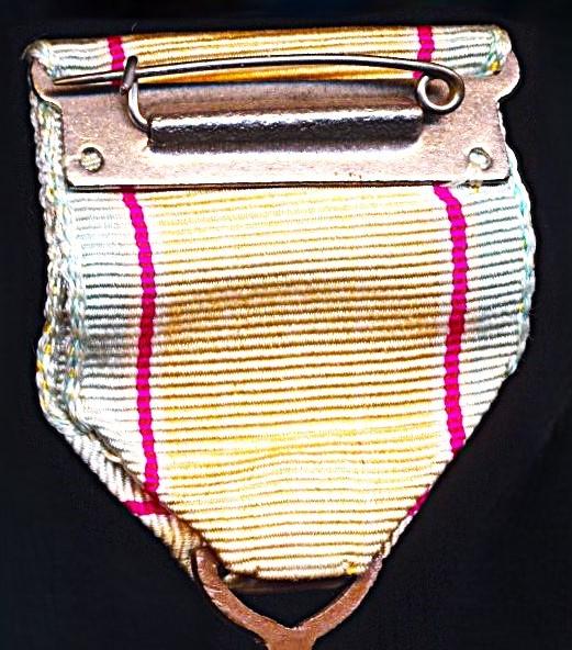 The medal retaining the original stitched silk riband, with mounting brooch on reverse. This latter complete with hinged pin and clasp fittings