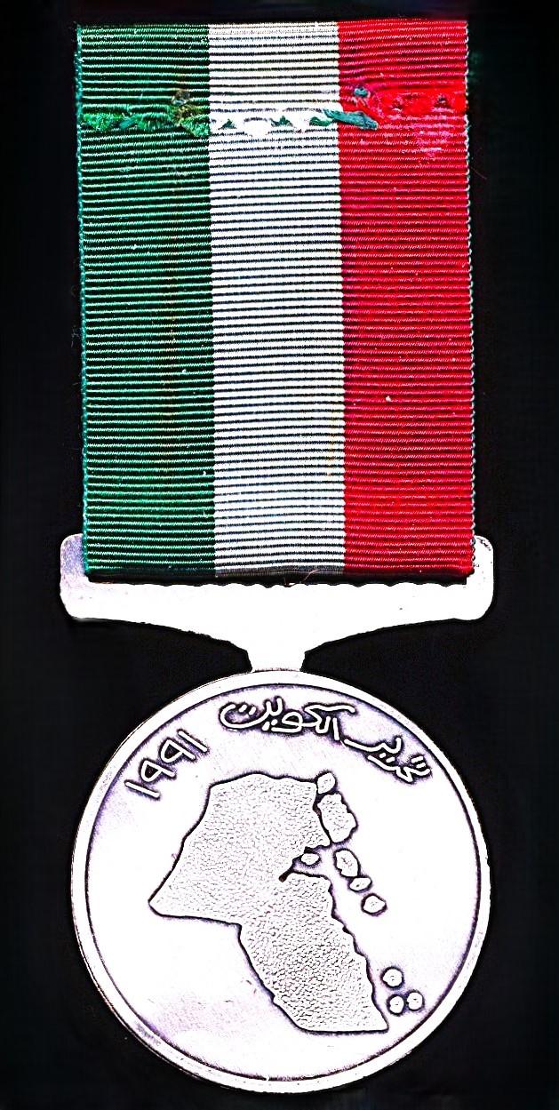 All British Armed Forces personnel present in theatre during the Gulf War 1991, were entitled to accept and receive this Kuwaiti award, that comprised five classes - the two highest classes being neck worn insignia. However no 'official approval' to wear the award or medal riband in British Armed Forces service uniform was ever subsequently granted