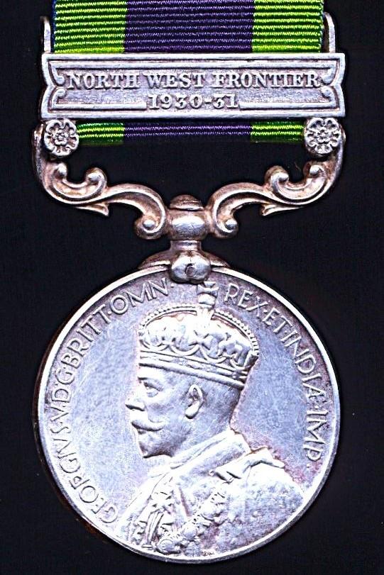 India General Service Medal 1908-35. GV 2nd Issue with clasp 'North West Frontier 1930-31' (6607 Swr. Asat Ali Khan. Poona Horse.)