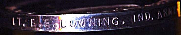 Eric Edward Downing only son of Edward William Downing (a 'Shipping Agent') and Christine Mary Cox was a native of Steyning, Sussex, England, where he was born, 25 June 1916. At the time of the compilation of the 1921 National Census for England & Wales, Edward is recorded as a 'Visitor' living with his Mother 'Married' and older sibling sister, Thelma Christine Downing (b. 1909), at a residence located at, 77 Wellbourne Street, Hove, Sussex. In 1939, Eric together with his mother and sister, were then residing at, 33 Busticle Lane, Sompting, Sussex, England. Eric was a pre-war member of the Territorial Army. Following active service in France with the Royal Army Ordnance Corps, during which he held the rank of Private, he was subsequently evacuated from the beaches at Dunkirk in 1940. Evidently a good soldier, he was selected for officer training and sent to India in 1941, where he was granted an Emergency Commission, in the Indian Army, when on 29 October 1941, he was appointed a Lieutenant and posted to the Royal Indian Army Service Corps, with which corps he later served overseas in the Middle East. He married 'Sister' Wilson at Baghdad, Iraq, on, 1943. Eric Edward Downing is recorded to have died at Bicester, Oxfordshire, England, 19 December 2002