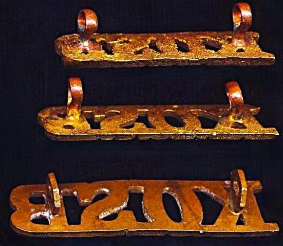 King's Own Scottish Borderers: Pair and single 'Other-Rank' gilding metal shoulder title badges (x 3). Circa 1902-1960