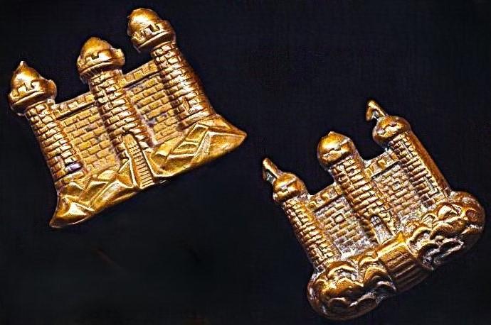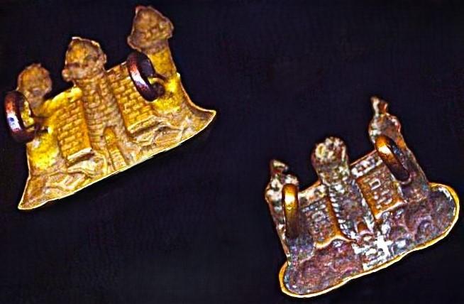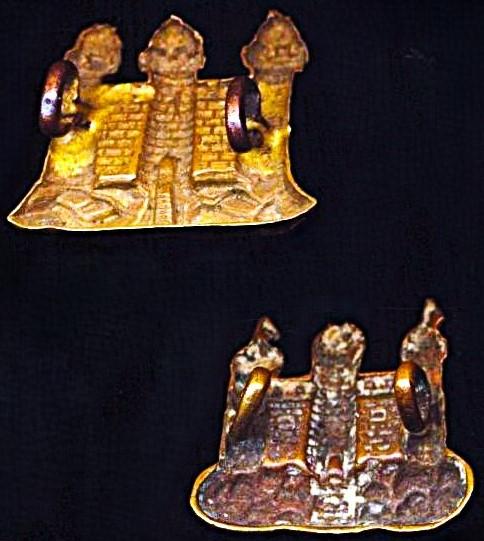 King's Own Borderers (25th Regiment of Foot): Two variant gilding metal collar badges. Worn by 'Other-Ranks' (circa 1874-1887)