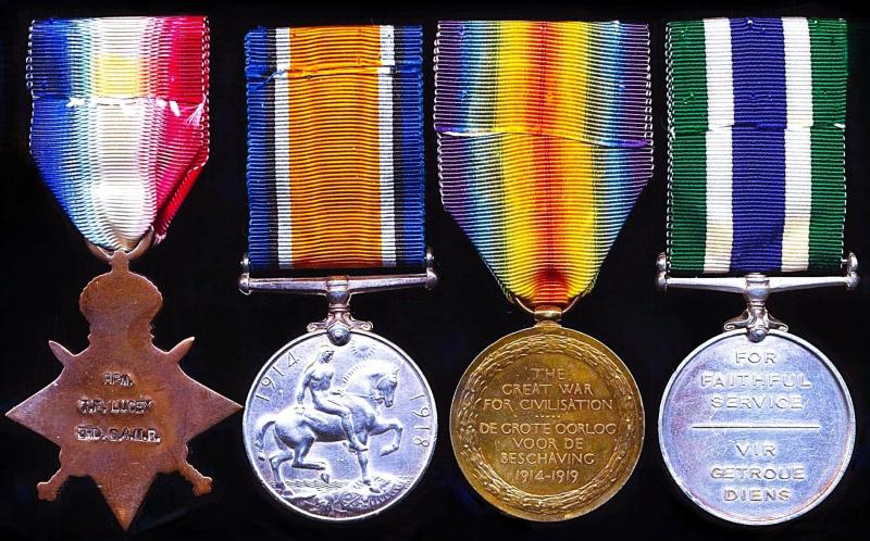 A Natal Mounted Policeman's, Great War South West Africa Campaign and Police Faithful Service Medal group of 4: Mounted Constable Thomas Frederick Lucey, South African Police, late 3rd South African Mounted Riflemen